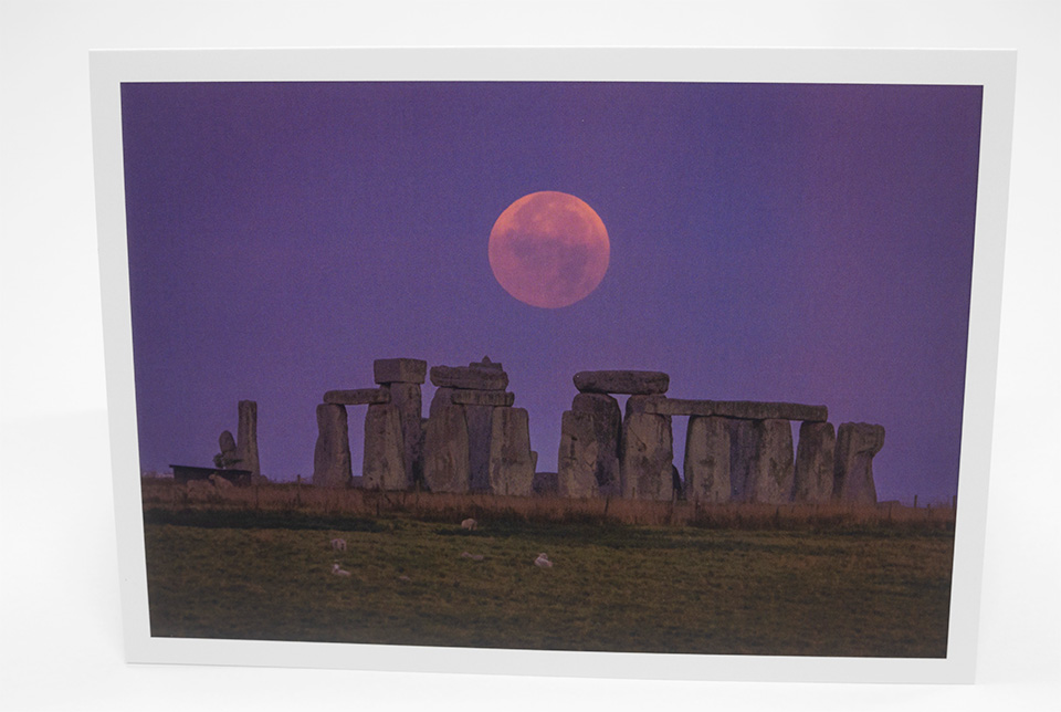 Greetings Card – ‘Full Moon setting behind Stonehenge’ Sept24
